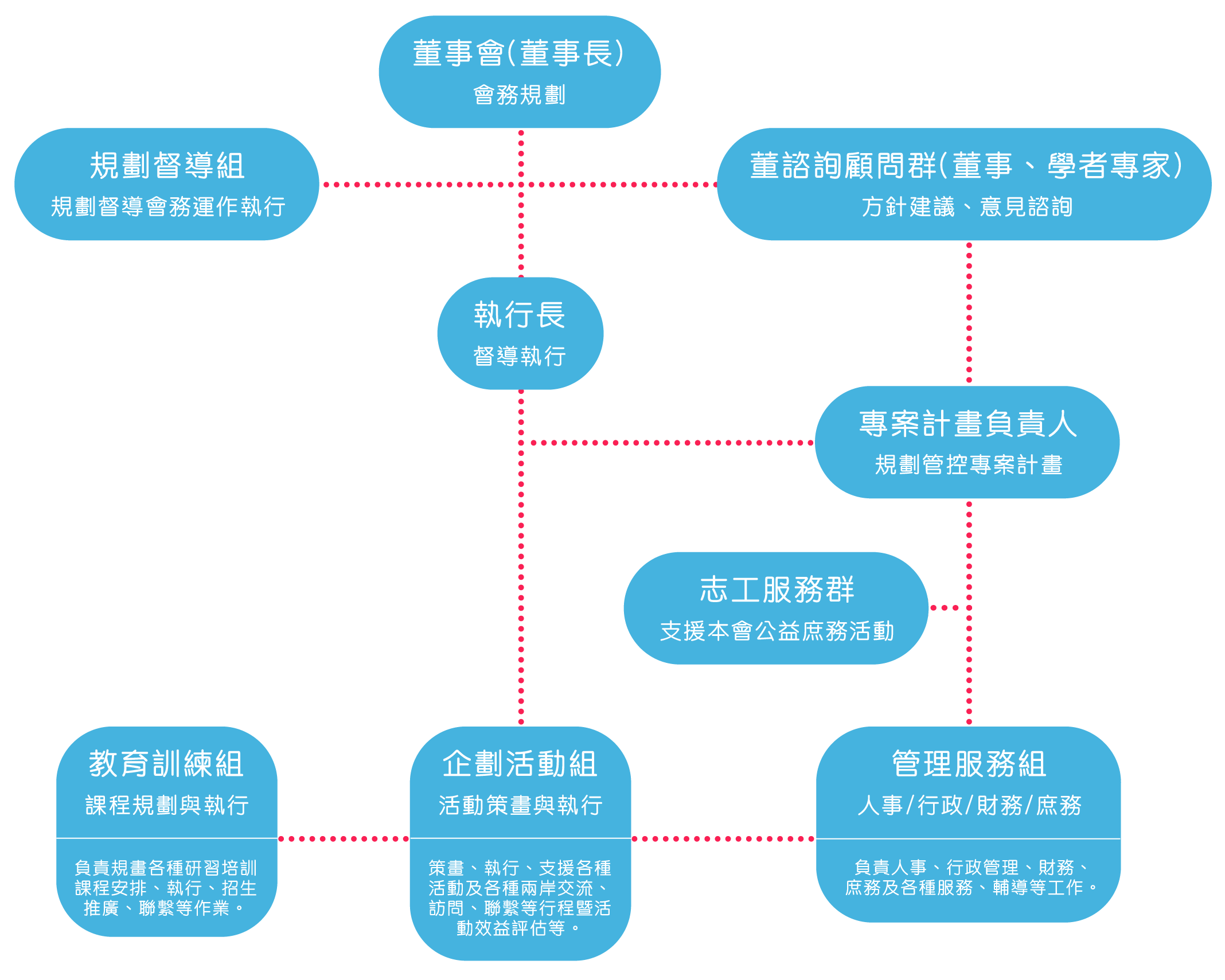 1. 師資培訓:依據政府培訓規範,為臺灣培訓數千名專業保母,並輔導大部分學員考取保母專業證照
